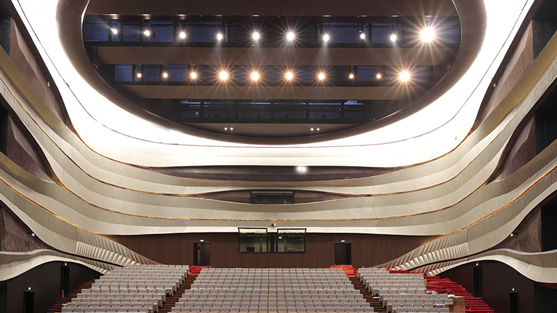 Multi-functional Theatre adopts a classic shoebox design, seating 500 for drama, chamber music, etc. Both stage sides have retractable seating, allowing flexible layouts—end stage, island stage, T-stage or flat floor—to redefine performer-audience relationships.